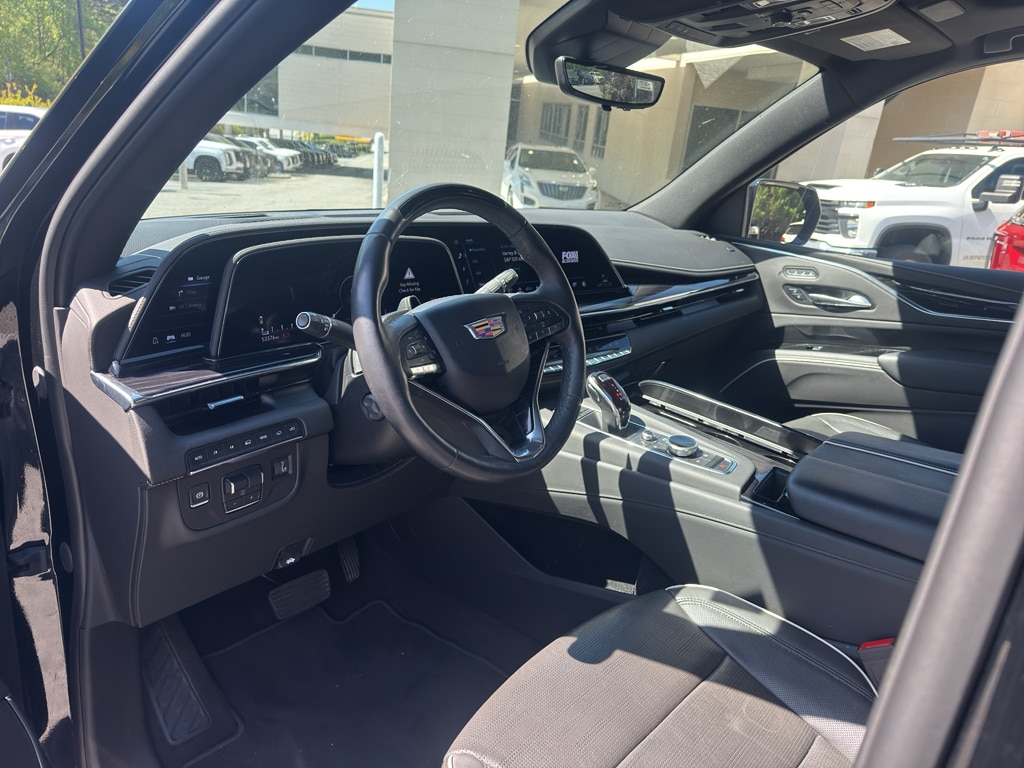 Cargo Convenience Package: Rear Cargo Shade; Black Roof Rack Cross Rails; Vertical Cargo Net. Touring Package: Soft Closing Front and Rear Doors; Illuminating Front and Rear Sill Plates; Air Ride Adaptive Suspension. Preferred Equipment Group 1SC: Trailer Side Blind Zone Alert; Power Panoramic Tilt-Sliding Sunroof; Enhanced Automatic Parking Assist; Smart Trailer Integration Indicator; Rear Camera Mirror Washer; Rear Camera Mirror; Theft-Deterrent Alarm System; Vehicle Interior Movement Sensor; Rear Cross Traffic Alert; Vehicle Inclination Sensor; Reverse Automatic Braking; Glass Breakage Sensor; Adaptive Cruise Control; Automatic Seat Belt Tightening; Body-Color Door Handles; Door Lock and Latch Shields; Electronic Limited-Slip Differential; Integrated Trailer Brake Controller; Hitch Guidance with Hitch View; Single-Speed Active Transfer Case; Running Board Assist Steps; Heated and Ventilated Driver and Front Passenger Seats; Reconfigurable Full-Color Head-Up Display; AKG Studio 19-Speaker Audio System; Magnetic Ride Control Suspension; Enhanced Automatic Emergency Braking. Onyx Package: Gloss Black Escalade Nameplate; Monochrome Cadillac Emblems; Puddle Lamps with Cadillac Crest; 22 12-Spoke Gloss Black Alloy Wheels. Power-Retractable Assist Steps. Black Roof Rack Cross Rails. Monochrome Cadillac Emblems. Rear Cargo Shade. Puddle Lamps with Cadillac Crest. Vertical Cargo Net. Front License Plate Bracket. **Equipment listed is based on original vehicle build and subject to change. Please confirm the accuracy of the included equipment by calling the dealer prior to purchase.**